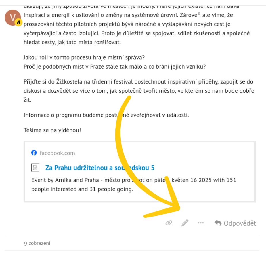 Pokud jej budete chtít zpětně upravit, je to možné přímo v detailu příspěvku kliknutím na ikonu tužky