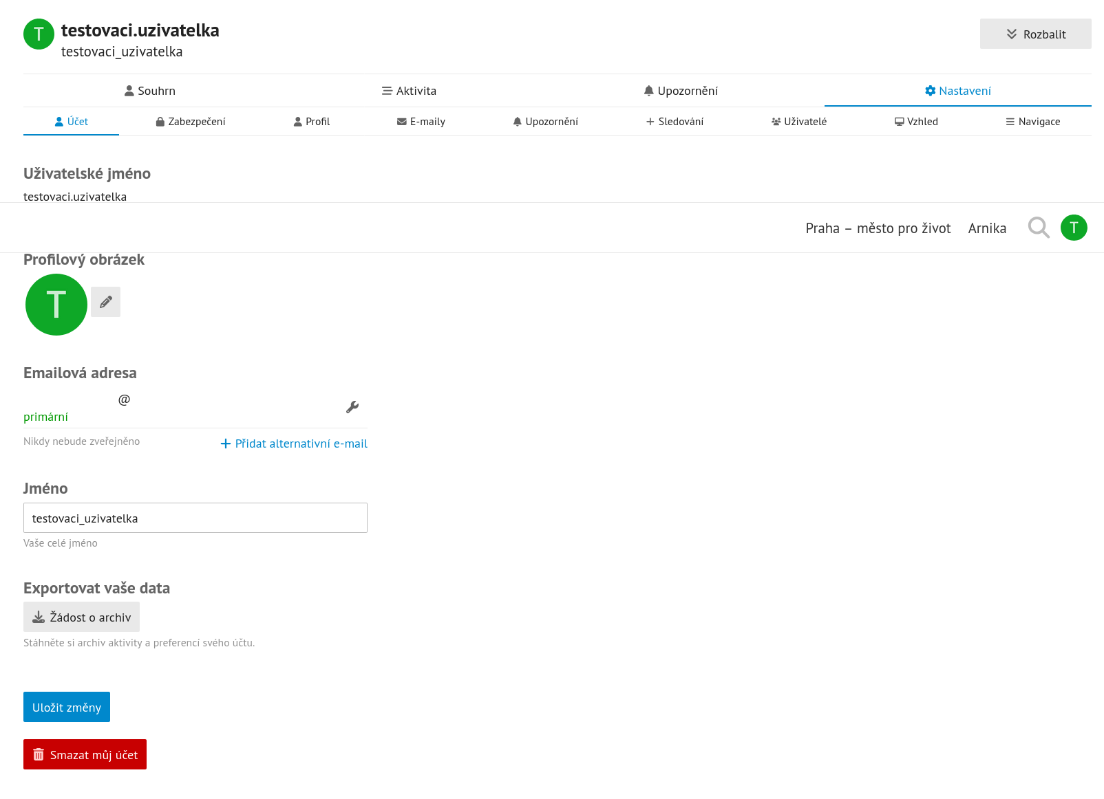 Na nastavení profilu se dostaneme pomocí ikonky uživatele v pravém horním rohu. Poté rozklikneme ikonu profilu a otevřeme nastavení.